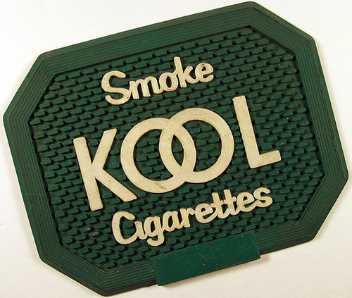 Smoke Kool cigarettes rubber mat; green background with white text.