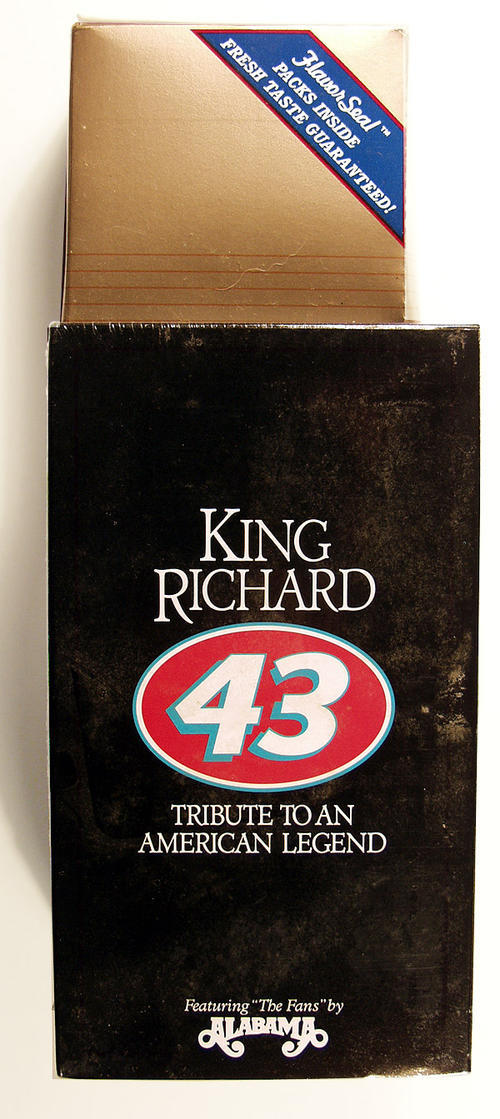 Carton of Winston lights with a VHS Video tape entitled "King Richard 43 Tribute to an American Legend. Featuring "The Fans" by Alabama".