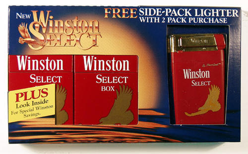 Winston SELECT 2 packs with free side pack lighter. Mail in offer enclosed. Dark blue winstion SELECT packaging.