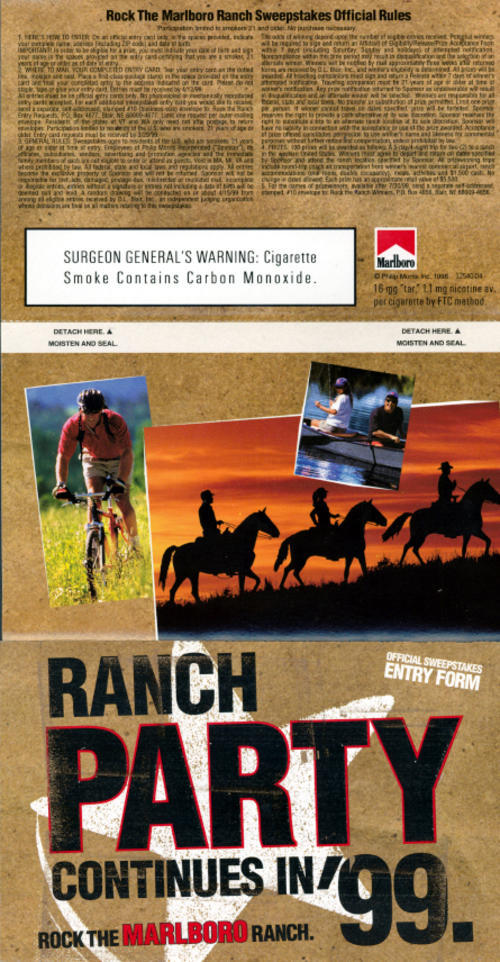 Sweepstakes entry form for Rock the Ranch Party '99.