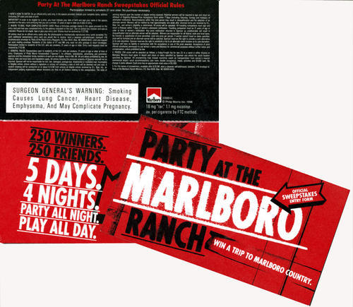 "Party at the Marlboro Ranch" sweepstakes entry form for 5 days 4 nights at Marlboro Ranch.