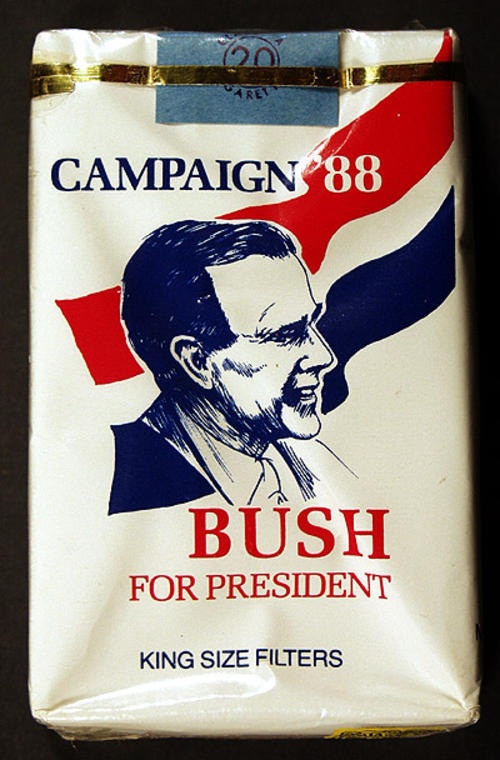 Red, white and ble stripes w/ picture of George Bush Sr. on both sides
