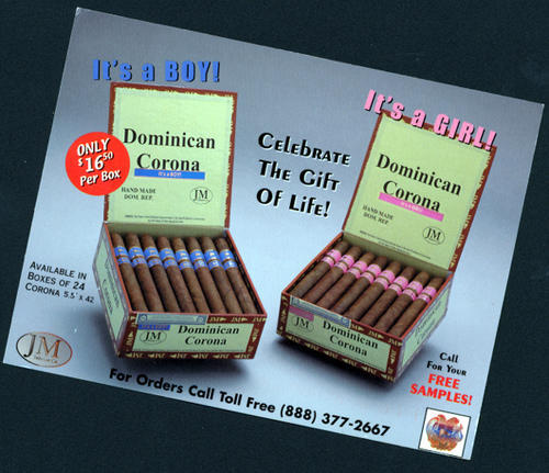 Postcard to tobacco trader from Hollywood. Ad for "It's a boy/girl" cigars. "Call for your free samples." $16.50 per box of 24.