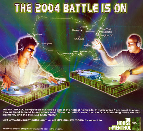 Kool Mixx DJ competition mailer. " THE 2004 BATTLE IS ON". other key words: music, young people, urban, events