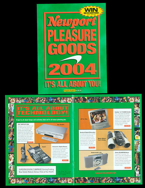 Direct mail catalog from Newport - Newport Pleasure Goods 2004, It's All About YOU! Colorful catalog with pictures of happy people framing each pages (including minorities). Features products such as clothing, radios, cd players, jewelry, digital cameras, tv, dvd/vcr player, digital phones and more. Each product lists the number of UPCs needed to redeem it. "You love it, so we jsut keep bringing it back. Go on and redeem your UPCs for Music Cash, Sporting Goods Cash and Movie Cash, which can be used at any participating store or theater."