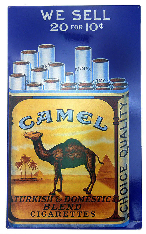 Antique reproduction poster advertising 20 non-filter cigarettes for the price of 10 cents.