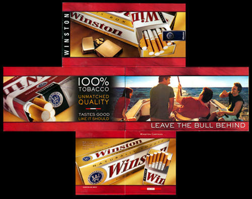 Direct mail from Winston, advertising the new brand loyalty items available (items redeemable for saved UPC codes) on Winston's website. Piece also comes with a card for a friend interested in signing up for direct mail, and with 4 coupons (each for $4.00 off a carton).