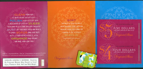 "Spring Cleaning" themed direct mail from Virginia Slims. Cover Text: "Clean away your cares with Virignia Slims' Spring Cleaning Checklist"