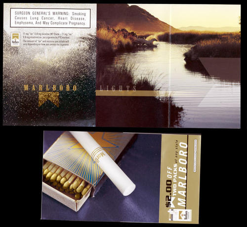 Simple direct mail from Marlboro in promotion of Marlboro Lights. Included 6 coupons.