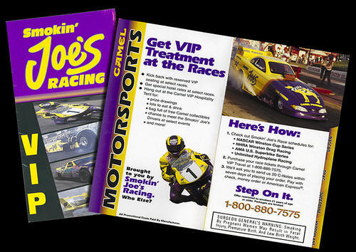 Schedule and information booklet about 1996 race series in which the "smoking Joe's Team" participated. Booklet sent as direct mail to members of the "VIP" club. Mentions VIP features related to the racing events such as VIP hospitality tents.