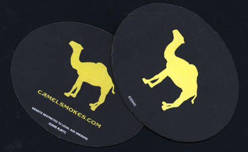 Camel coasters found in a New Jersey bar. Coasters advertise the brand's website address, serving as a passive form of advertising to bar patrons, and building on relationship between tobacco and alcohol use.