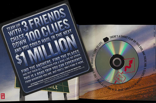 Direct mail with information for the 3rd Outwit the West sweepstakes, a chance for teams of 3 people to win one million dollars. Piece provides, instructions, registrations information and the "clue book". Contestants participate by solving and submitting the provided clues. Cluebook also provides a dvd with a short film which includes 5 "hidden clues".