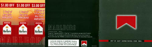 Direct mail from Marlboro thanking the receiver for signing up for direct mail and welcoming to the brand. "Welcome to a place like no other. We're glad you signed up online, because you just became part of something big". Piece includes 3 cigarette coupons as well as an offer for a free bottle opener upon updating one's smoking preferences either online or by calling a provided toll free phone number.