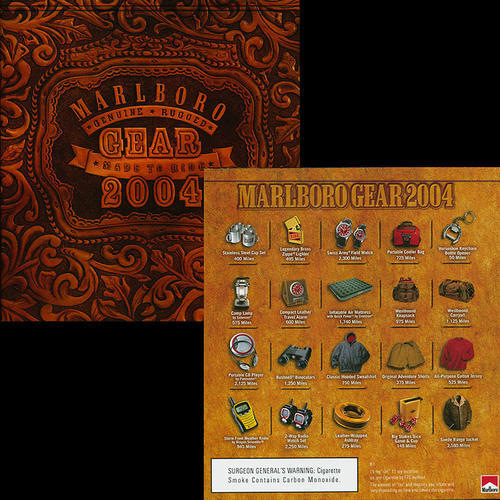 Direct mail from Marlboro featuring the Marlboro Gear 2004 Catalog - "Genuine Rugged Made to Ride". Includes 20 items redeemable for Marlboro Miles.