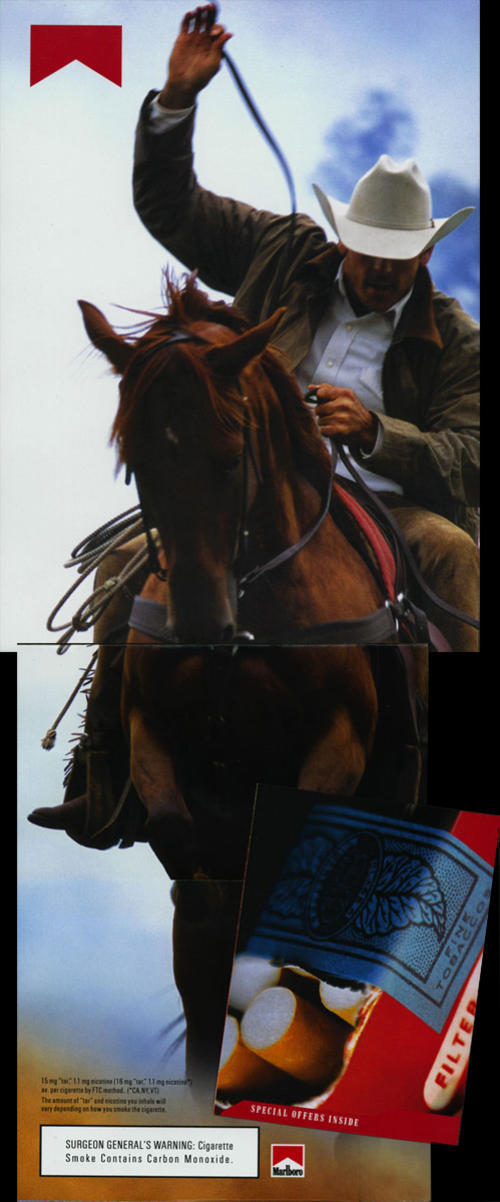 General promotional direct mail from Marlboro, featuring an image of a cowboy on a horse. Piece comes with 7 coupons and information to give to a friend for signing up to get Marlboro direct mail.