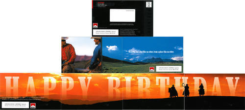 Direct mail birthday card sent from Marlboro. Text: "Wishing you a day like no other, from a place like no other. Happy Birthday."
