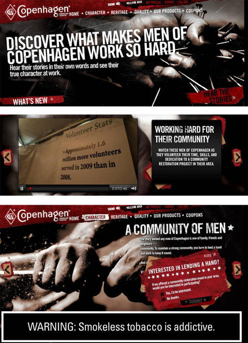 In late June 2010, a page on the website invited visitors to indicate if they would be willing to participate in a community restoration event in their area if one was offered by Copenhagen. By November 2010, a video had been added to the section showcasing volunteer efforts that had resulted thus far. The video includes clips of men participating in various work projects including painting, carpentry and landscaping. The section continues to invite site visitors to indicate their willingness to volunteer for local restoration projects.
