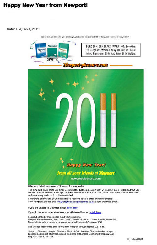New Year's holiday themed email from Newport. E-mail text: "Happy New Year! From all your friends at Newport!