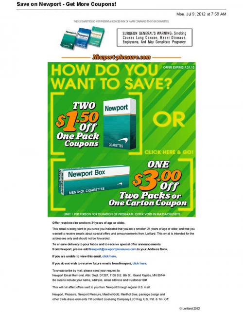 Coupon - Discount E-mail Menthol