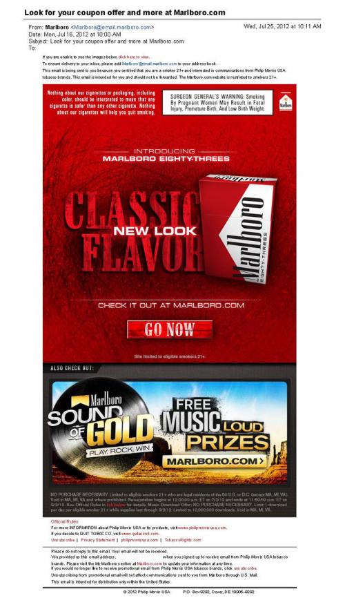 style, Marlboro Eighty-Threes. The email directs the receiver to the