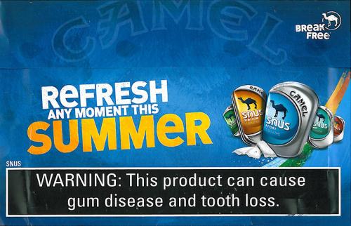A summer-themed mailing received from Camel Snus. The mailing features a image of the product line-up with a beach in the background. It also contains tabs with different summer activities and when lifted, have a flavor suggestion and a description about why to use snus in that particular situation. The mailing also directs the receiver to camelsnus.com to take the ongoing Pleasure Switch Challenge. Two coupons were included: one coupon for a tin of snus for $1.00 and one coupon for 2 snus for the price of one. Main text: "Enjoy all summer has to offer. Discover the refreshing moments of summer."