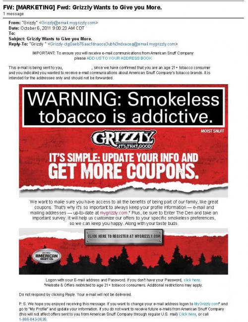 Coupon - Discount E-mail Smokeless Tobacco