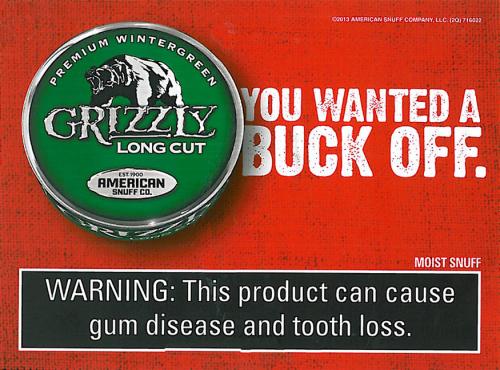 Direct mail piece from Grizzly received in October 2013 delivering a coupon to the reciever with text: \"You wanted a buck off. Here\'s your buck off.\" The coupon is for one dollar off a can of Grizzly. The piece also explains to the receiver that they can print their weekly coupons at mygrizzly.com.