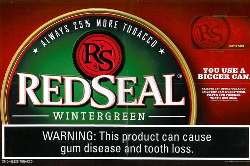 Direct mail from Red Seal received in January 2014 advertising their Wintergreen product. The piece focuses on their product having 25% more tobacco than other brands by having bigger cans. The piece delivers 3 coupons for $4 off 5 cans any style.