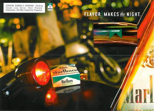 Direct mail from Marlboro received in May 2014 advertising Marlboro Menthol products and the "Flavor Finder" feature on the brand's website. The piece contains images with a pack of Marlboro Menthol in the foreground, and delivers two coupons for Marlboro products. The piece also invites the receiver to Marlboro.com to "find a bar in your area." Text: "Every night has a flavor all its own. Flavor Makes the Night."
