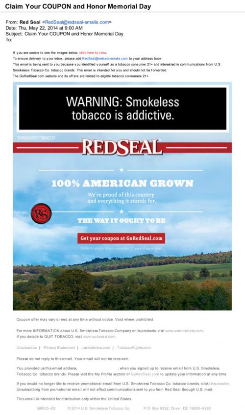 Coupon - Discount E-mail Smokeless Tobacco