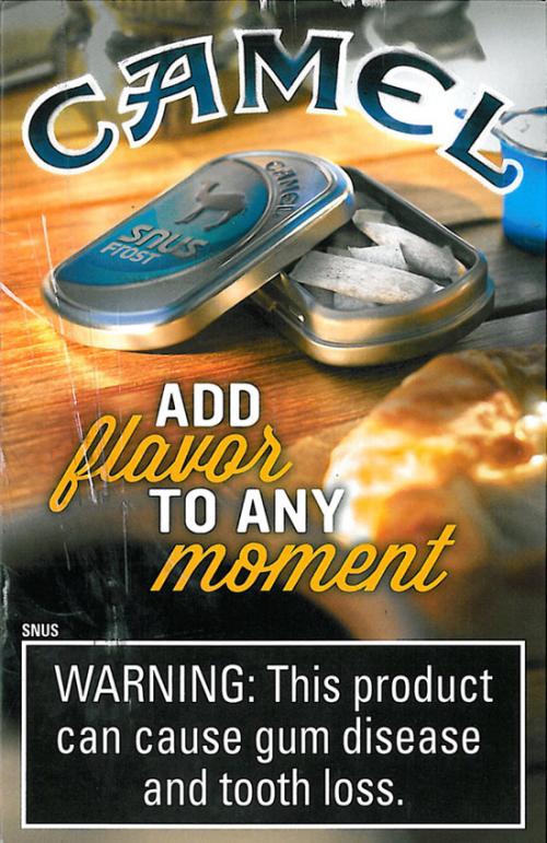 as Mint, Mellow, and Frost Snus. The piece contains multiple images of where people can enjoy Camel Snus. The piece also informs