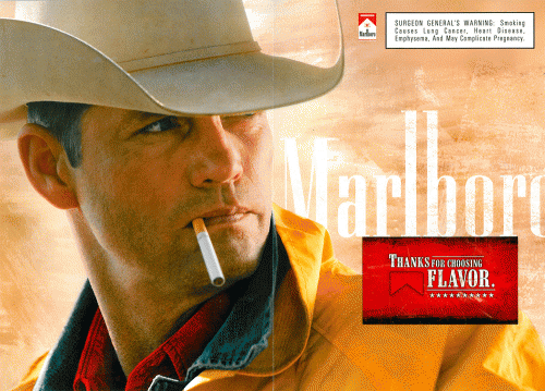 piece features an image of a cowboy smoking a Marlboro cigarette and