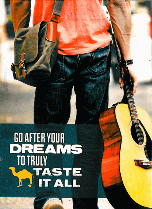 guitar and invites the receiver to "Go After Your Dreams to Truly Taste It All." The piece also includes a guide to