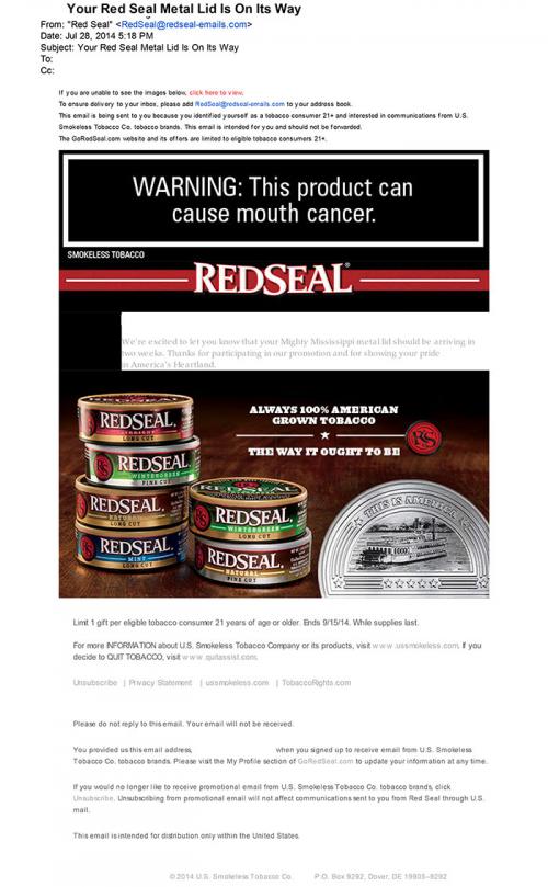 E-mail Promotions-Promo items/Gifts Smokeless Tobacco