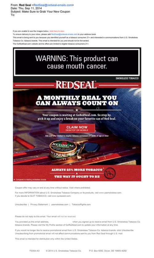 Coupon - Discount E-mail Smokeless Tobacco