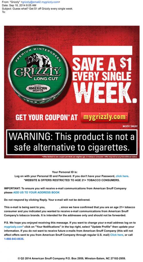 Coupon - Discount E-mail Smokeless Tobacco