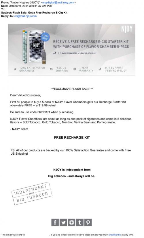 Coupon - Discount E-cigarettes E-mail Flavored Product Promotions-Free Gift w/Purchase