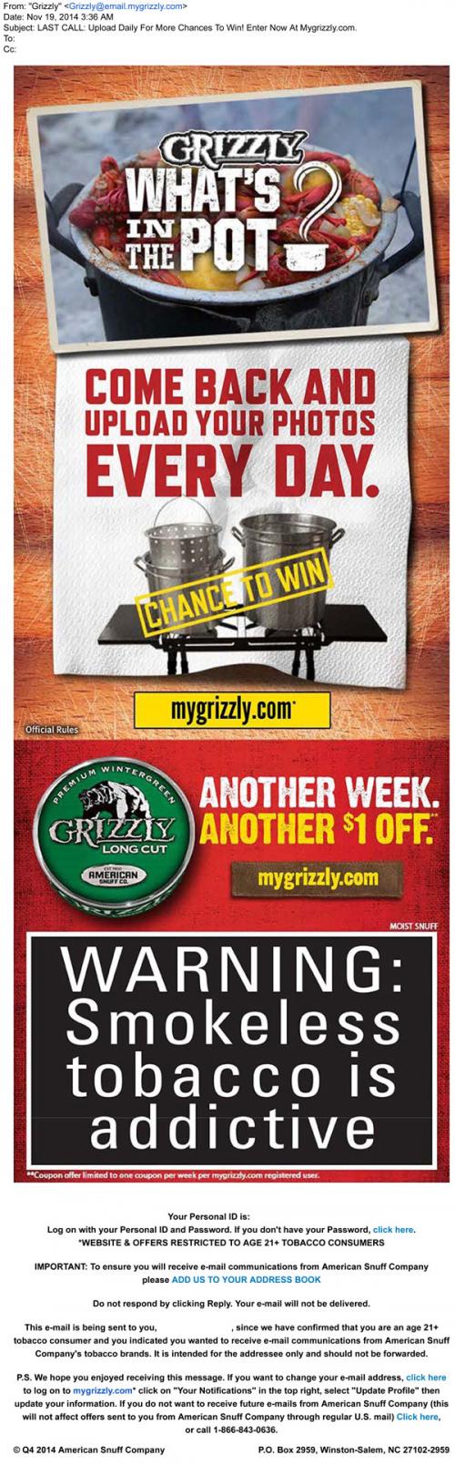 Coupon - Discount E-mail Smokeless Tobacco Sweepstakes