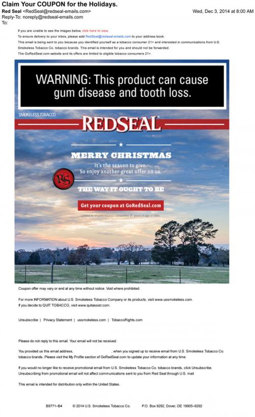 Coupon - Discount E-mail Seasonal/Holiday Smokeless Tobacco