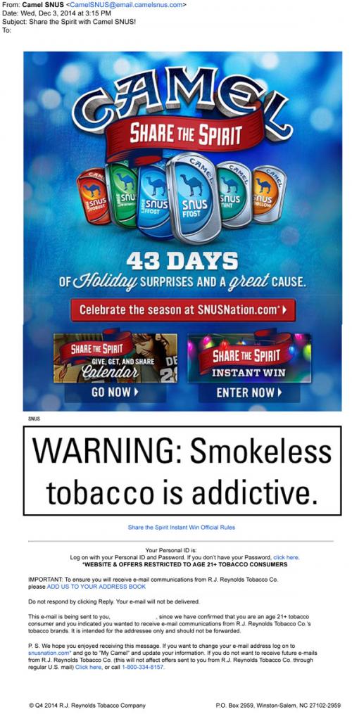 E-mail Seasonal/Holiday Smokeless Tobacco Sweepstakes