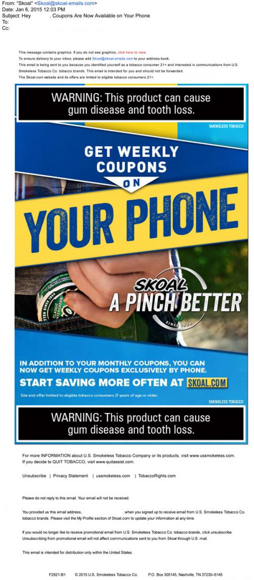Coupon - Discount E-mail Smokeless Tobacco