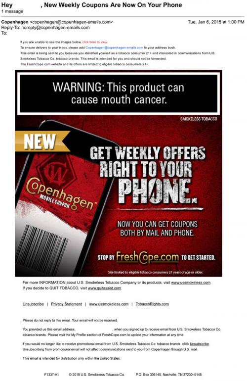Coupon - Discount E-mail Smokeless Tobacco
