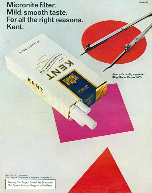 Magazine ad for Kent cigarettes. "Micronite filter. Mild, smooth taste. For all the right reason. Kent."