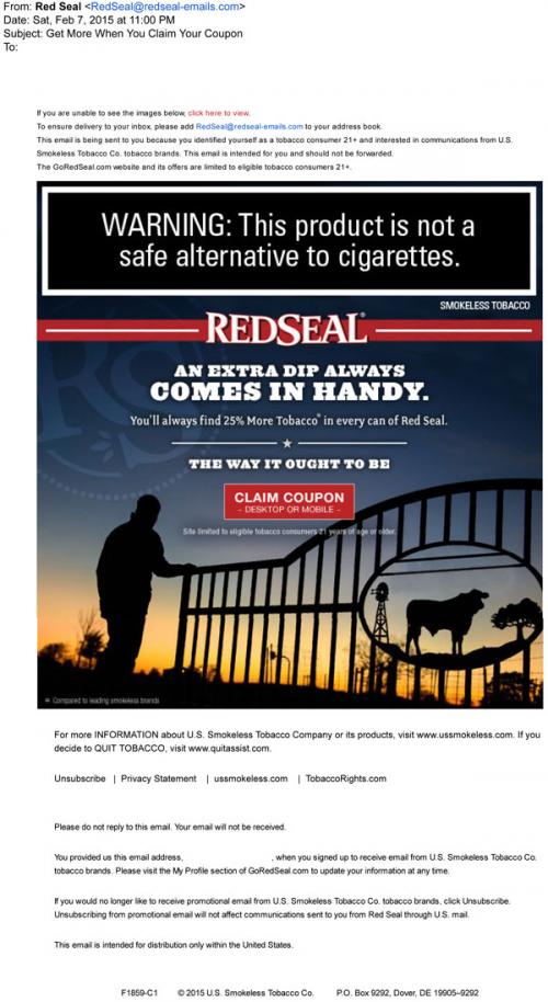 Email from Red Seal inviting the recipient to claim a coupon via desktop or mobile. Text: "An extra dip always comes in handy."