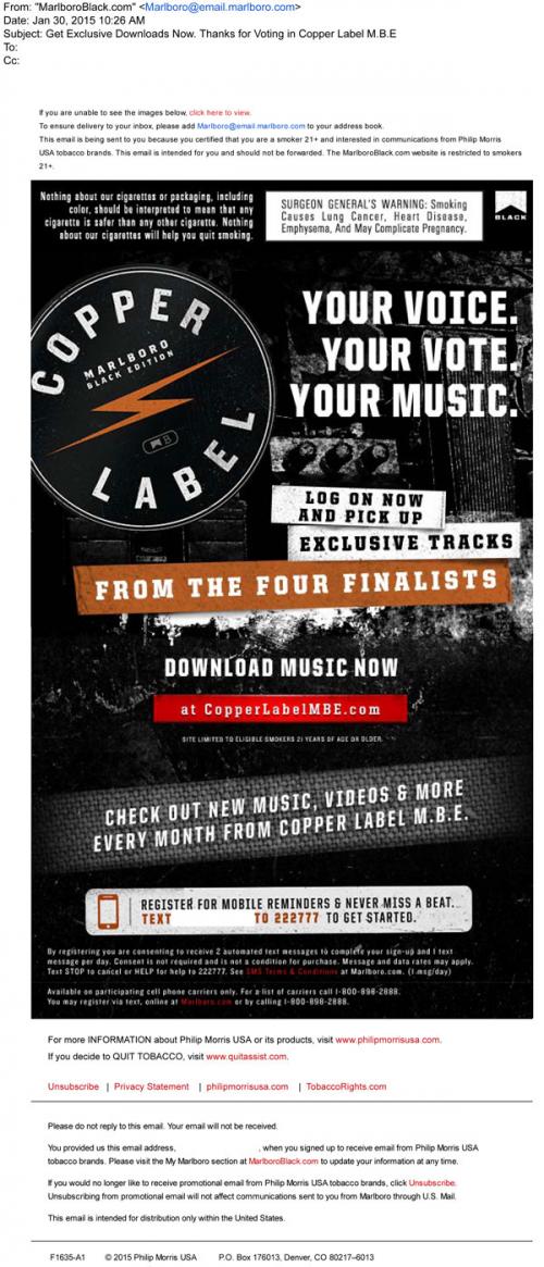 thanking the recipient for voting in the Copper Label Marlboro Black