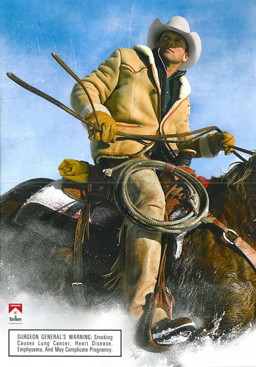 Direct mail piece from Marlboro delivering coupons in March 2015. Images feature a cowboy and a herd of horses running through the snow. Text: "There is a place time will never change. Marlboro Country."
