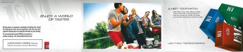 Direct mail from L&M received in March 2015 delivering coupons the receiver requested online. Direct mailing is a multi-fold item and features pictures of friends gathering together at a BBQ. The piece contains two coupons for $1 off a pack, as well as a recipe. Text: "Enjoy a world of tastes & meet your match. L&M offers three wildly different tastes, each made with a unique blend of premium tobaccos. Finally. The taste you've been looking for, courtesy of L&M."
