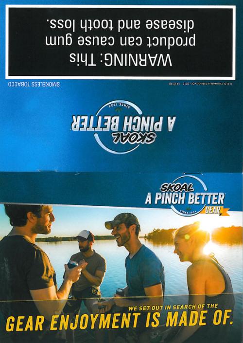 Direct mail from Skoal received March 2015 containing a coupon for $3.50 off two cans. The piece also informs recipients how they can enter to receive tons of cool gear from Skoal.com. The pages in the booklet illustrate some of the prizes that are to be given away. Direct mail received in NJ and DC.