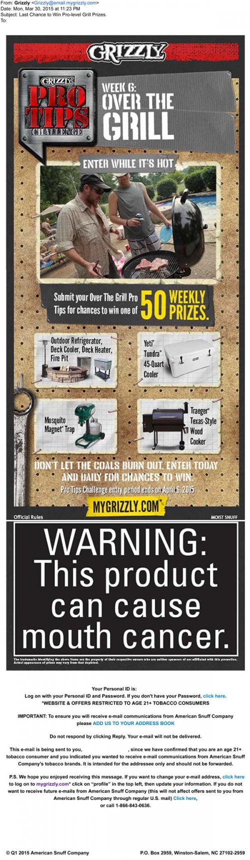 Week 6 of Grizzly's Pro Tips challenge asks users to "enter while it's hot" and submit grilling tips on the brand website in order to win some outdoor grill prizes.