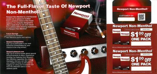 Direct mail promoting Newport non-menthol (received in Texas) December 2014. Introduces the recipient to their non-menthol products and the benefits of participating at the brand website. Includes coupons and a QR code to directly link to the website, with a customer ID# to log on.